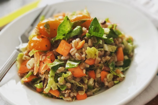 Farro Salad with Shaved Brussels Sprouts and Pecans